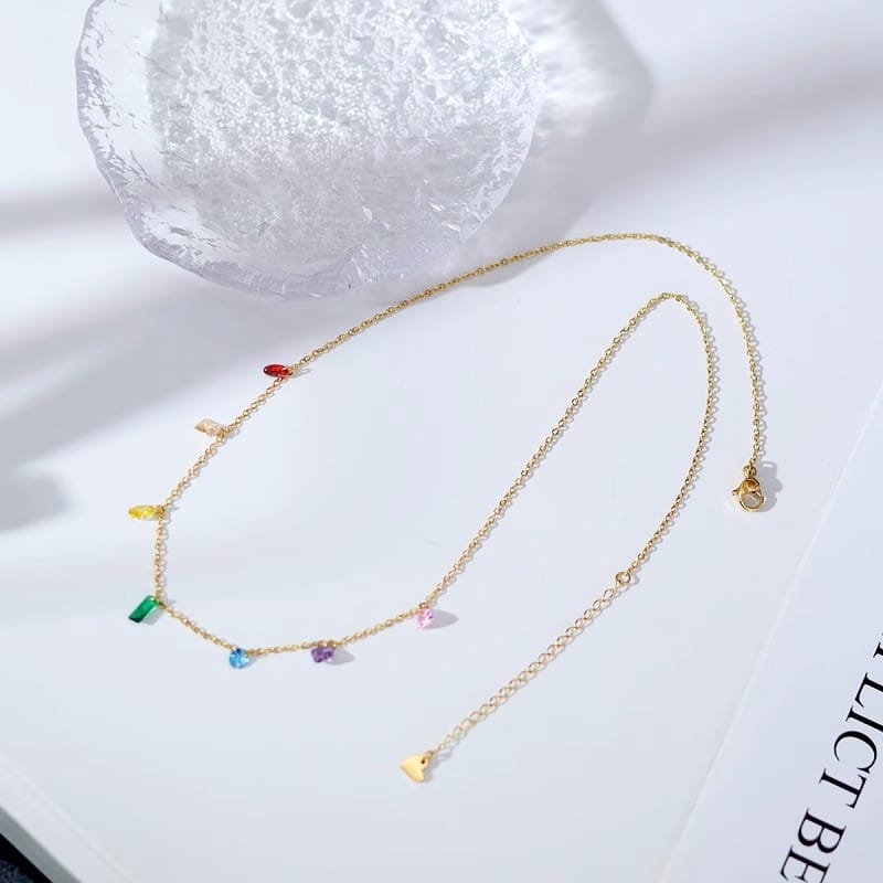 Elegant Anti-Tarnish Gold Plated Multicolor CZ Necklace