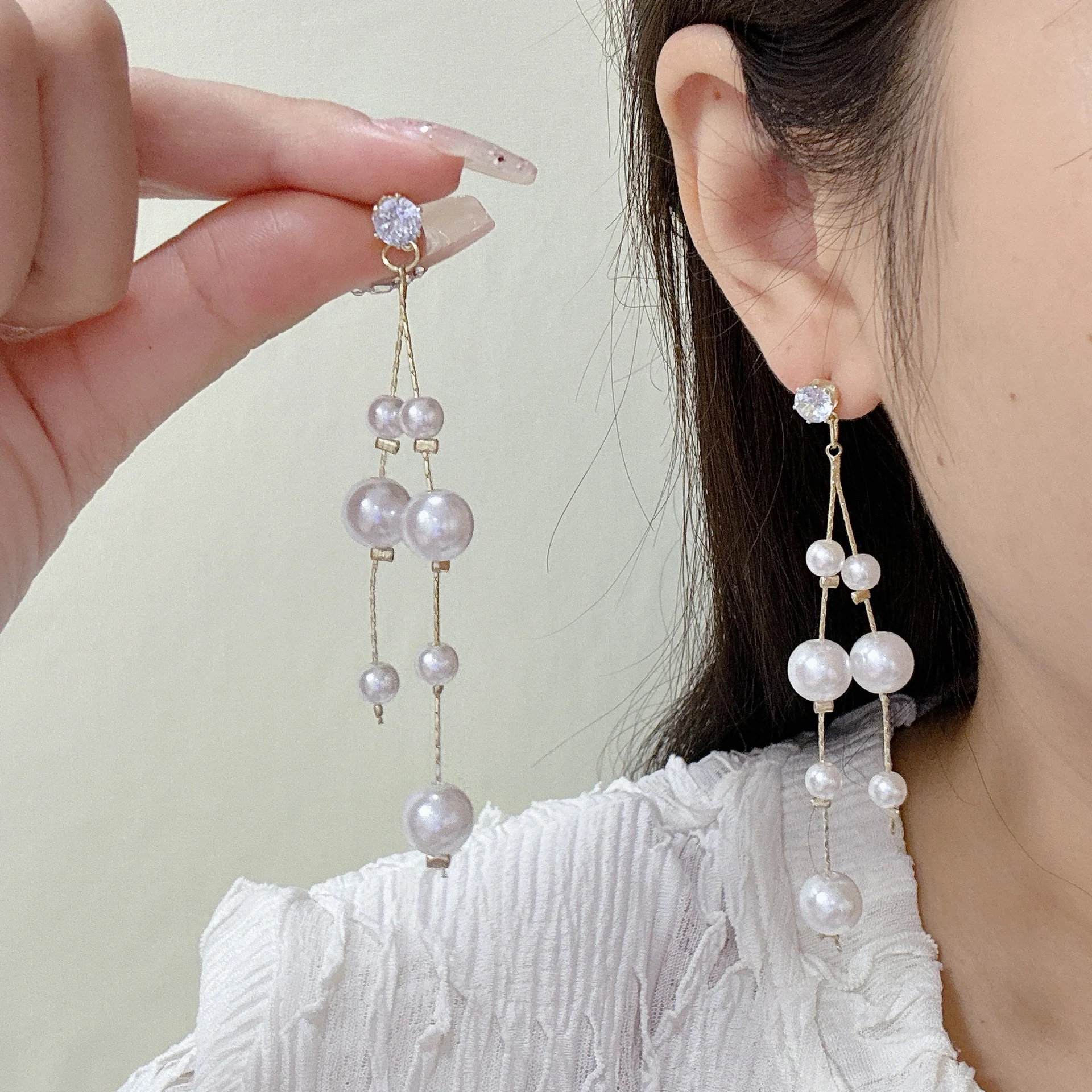 - Design: Long Dangle/Tassel with Multiple Pearls
